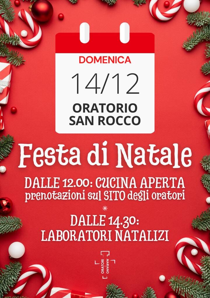L’Oratorio San Rocco invita tutti — famiglie, bambini, ragazzi e comunità — alla tradizionale Festa di Natale, in programma domenica 14 dicembre.